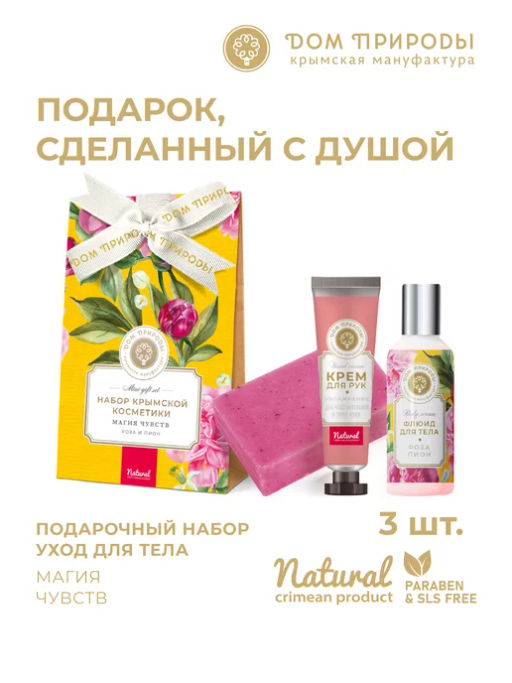 Описание товара Этот набор скрывает в себе магию цветочных ароматов: пленительная роза и благоухающий пион... Для очищения кожи и придания ей бархатистости подойдет натуральное мыло. О красоте и защите кожи рук позаботится крем с ценными маслами. Атмосферу праздника поможет создать флюид - отлично увлажняет кожу и придает ей сияние.