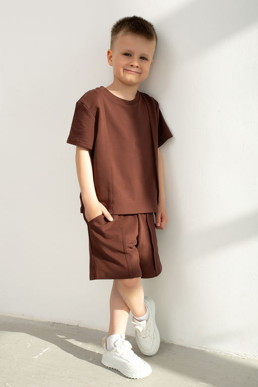 Футболка оснащена короткими рукавами и свободно сидит на теле, позволяя ребенку активно двигаться и играть без ограничений. А шорты с мягким поясом на резинке обеспечивают идеальный комфорт и дополнительную свободу действий, а вместительные боковые карманы удобно разместят мелкие игрушки и необходимые мелочи.