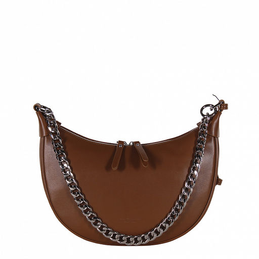 Сумка в форме полумесяц, выполнена из экокожи. Дополнена серебристой фурнитурой. Данная модель закрывается на молнию. Каркас полужесткий. В комплекте имеется встроенный ремень с регулировкой длины и цепочка.