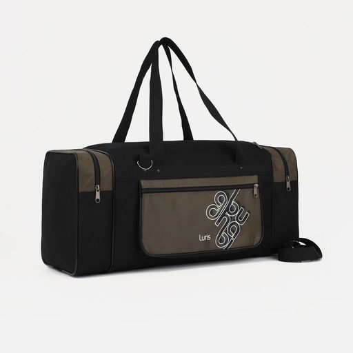 • Сумка дорожная, 3 отдела на молниях, наружный карман, длинный ремень, цвет чёрный/хаки