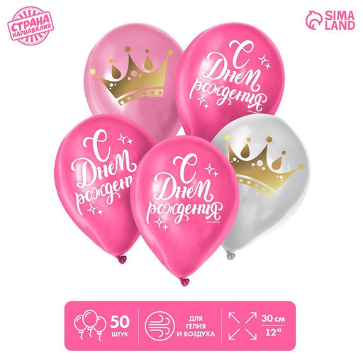 • Воздушные шары латексные 12" «С Днём Рождения», 50 шт.