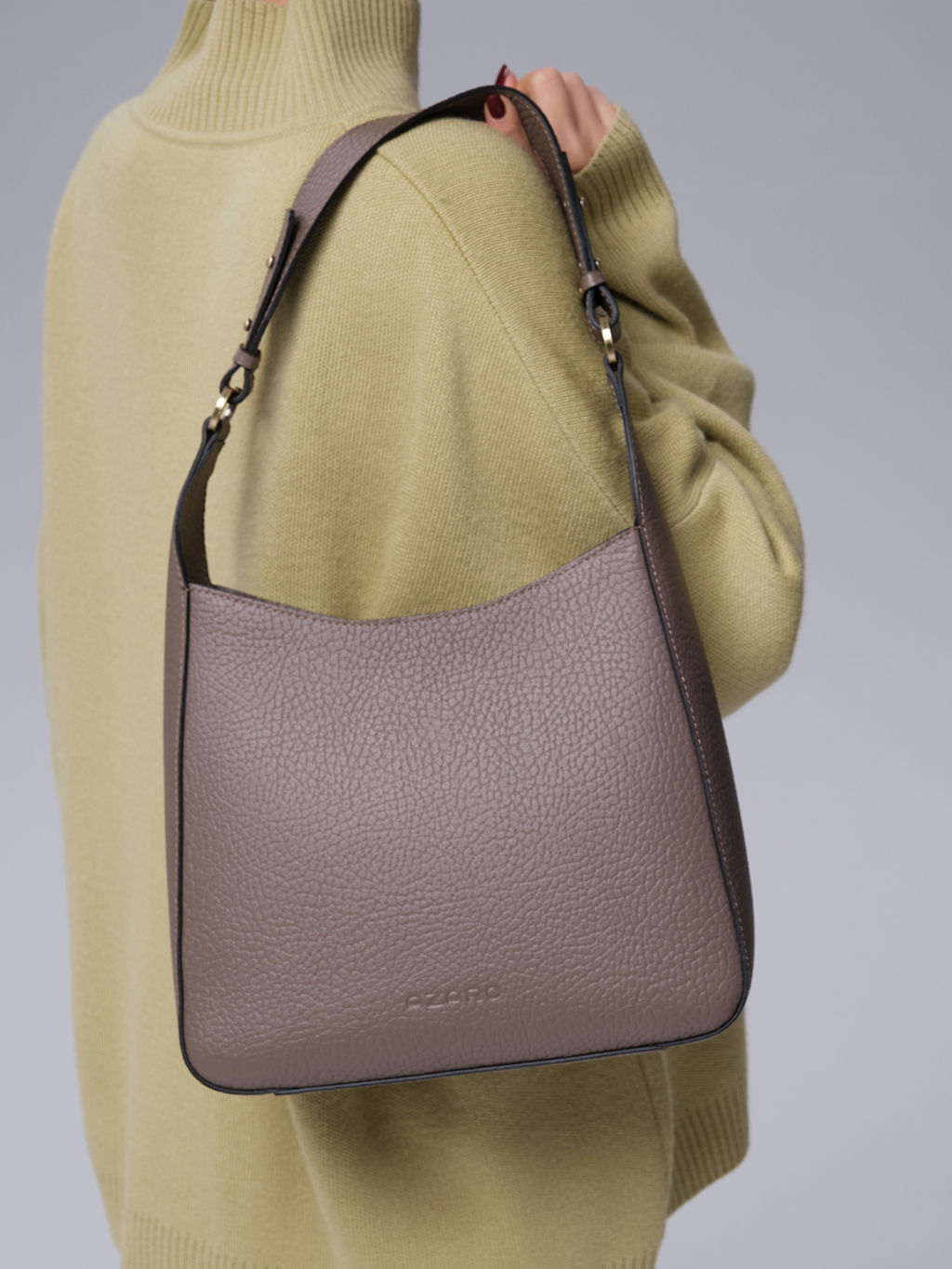 Женская кожаная сумка Azaro 31027 тауп/соло сочетает в себе лаконичность, вместительность и безупречное качество. Минималистичный, без лишних деталей дизайн с акцентом на качество материала и чистоту линий. Изготовлена из натуральной кожи с фактурной поверхностью - долговечного и благородного материала, который со временем становится только лучше. На нижнюю часть сумки нанесен логотип бренда. Универсальный коричневый цвет легко сочетается с одеждой любых оттенков, подходит как для повседневных, так и для деловых образов. Удобные ручки средней длины позволяют носить сумку на плече или в руке. Они надежно закреплены с помощью металлической фурнитуры золотистого оттенка. Внутреннее отделение на молнии с водонепроницаемой хлопковой подкладкой идеально подходит для хранения всех необходимых вещей - от кошелька и телефона до косметички и небольших аксессуаров. Отсутствие внутренних перегородок даёт свободу в организации пространства. Сбоку расположен небольшой внутренний карман на молнии для наиболее ценных вещей. Лаконичный дизайн и благородный материал делают сумку подходящей для любого случая - от прогулки до деловой встречи. Это идеальный выбор для тех, кто ценит сочетание стиля, качества и функциональности. Детали: кожаная сумка, одно внутреннее отделение, 2 внутренних кармана - на молнии и без застежки, водонепроницаемая хлопковая подкладка. -- Характеристики -- Тип товара: Женские сумки Цвет: тауп соло Материал: Натуральная кожа Бренд: Azaro Тип: Сумка на плечо Страна-изготовитель: Россия Высота, см: 29 Ширина, см: 25 Глубина, см: 11 Материал подкладки: Хлопок Количество внутренних отделений: 1 Тип застежки: Молния Формат А4: не вмещает Высота ручек, см: 28 Ручки: На плечо, На локоть Пол: женская коллекция Группа товара: Сумки Выгружать товары на сайт: Да Количество внутренних карманов, шт: 2