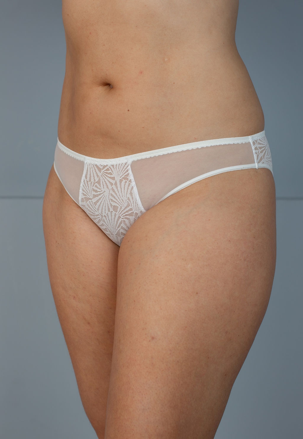 Трусы с классической посадкой, выполнены из эластичного и мягкого кружевного полотна и эластичной сетки.