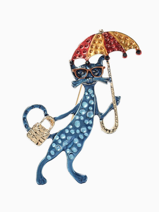• Брошь «Кошка» с зонтом, цветная в золоте