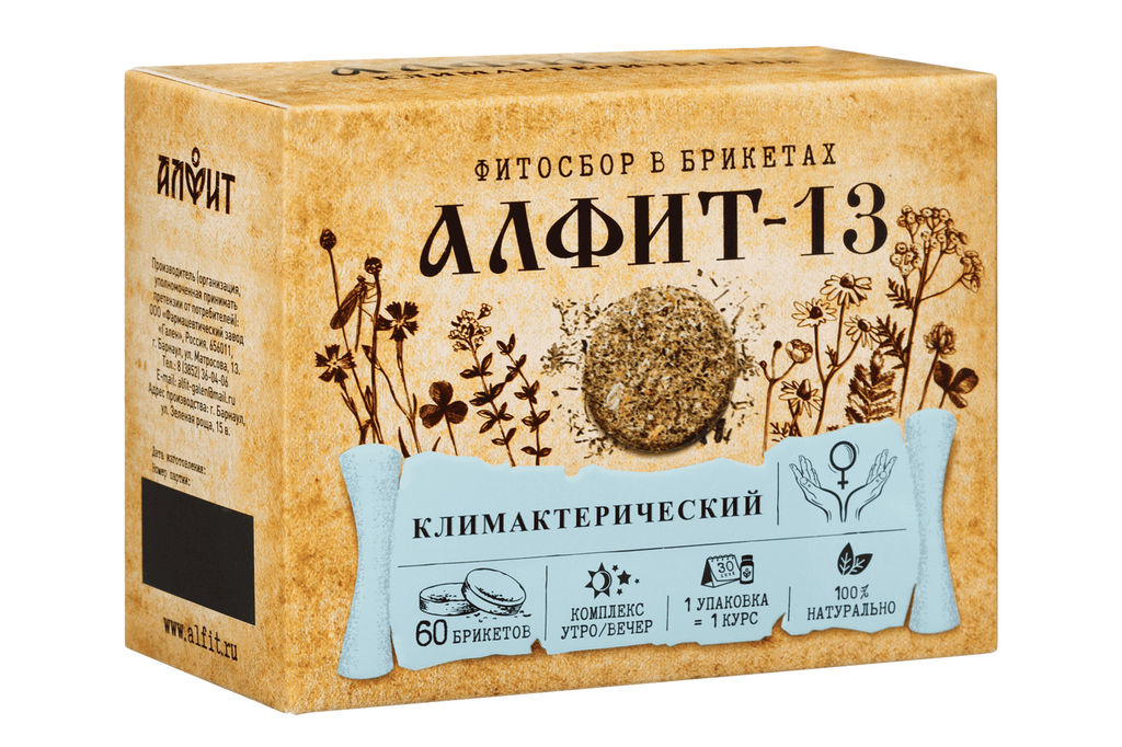 2 брикета (1 брикет утром (Алфит-13 утренний), 1 брикет вечером (Алфит-13 вечерний)). Комплект рассчитан на 1 месяц приема.