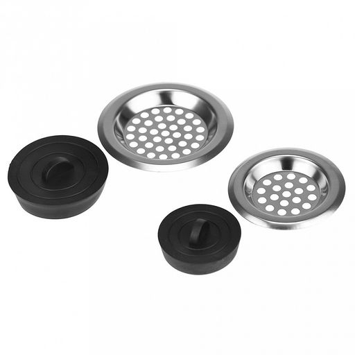 Набор для раковины 4 предмета: пробка-сетка для раковины из нержавеющей стали - 2 штуки: д6см, д7,5см ; пробка резиновая - 2 штуки: д3,5см, д4,5см, на картоне (Китай)