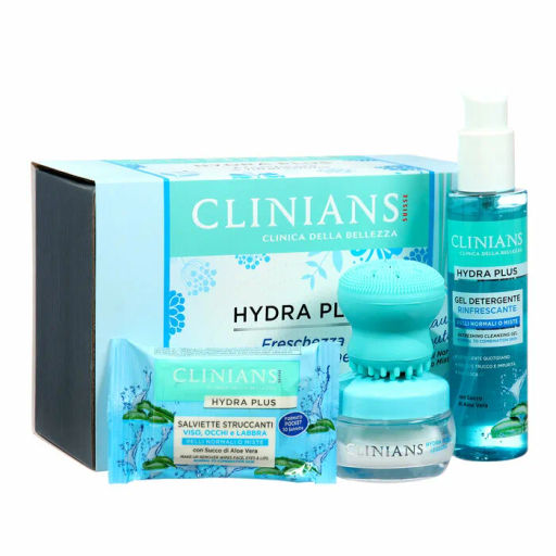• CLINIANS Подарочный набор Hydra Plus (крем для лица+крем для умывания+салфетки влаж+щетка для лица)