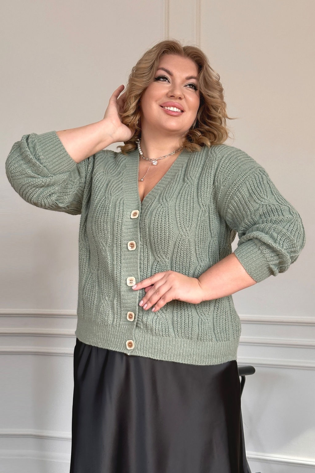 Кардиган, выполненный из высококачественной пряжи - идеальное решение для стильных и модных женщин, которые стремятся выглядеть привлекательно и комфортно в любое время года. Благодаря уникальной технологии вязки, кардиган обладает удивительной мягкостью и легкостью, позволяя коже дышать. Глубокий V-образный вырез переходит в планку с пуговками. Кардиган можно носить как открытым, так и застегнутым на пуговицы это позволяет создавать различные стильные сочетания. Манжеты на рукавах полной длины и  низ изделия связаны в технике английской резинки. Благодаря своему универсальному дизайну, этот кардиган идеально сочетается с любыми нарядами - от повседневных до вечерних.  Безупречный стиль этого изделия подчеркнет вашу индивидуальность и придаст образу шарма и элегантности.­