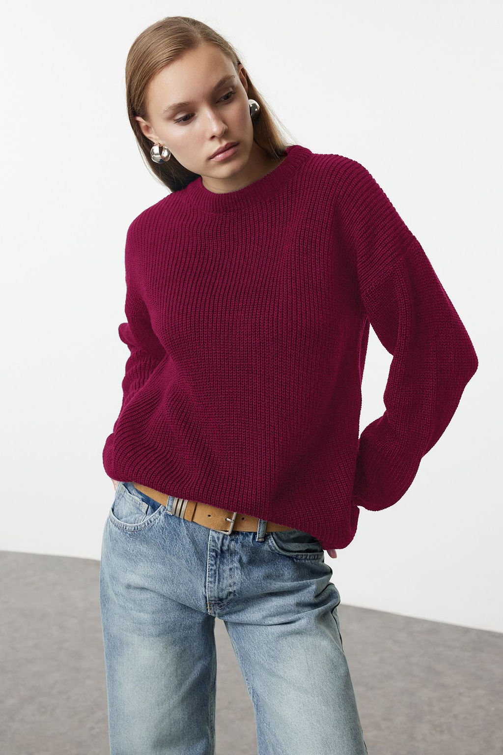 Bordo Genis Kal?p Fitilli Yumusak Dokulu Triko Kazak TWOAW25KZ00342