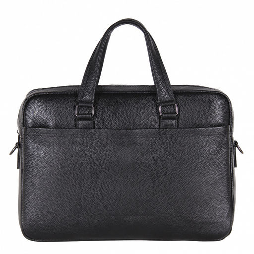 Мужской портфель выполнен из натуральной кожи. Дополнен  фурнитурой темное серебро. Данная модель закрывается на молнию. Каркас полужесткий. Носится в руке за встроенные ручки или на плече. В комплекте имеется съемный ремень.