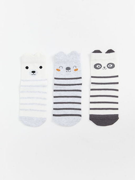 • Bask?l? Erkek Bebek Patik ?orap 3l?