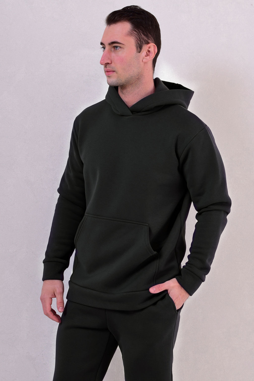 Мужской костюм из теплого футера с начесом премиум качества. худи свободного кроя с капюшоном, карманом "кенгуру", рукава по низу на манжете. Брюки-джоггеры свободного кроя, заужены к низу на резинке, с двумя боковыми карманами, пояс на широкой резинке со шнуром. Длина худи: 46-73 см, 48-74 см, 50-75 см, 52-76 см, 54-77 см, 56-78 см, 58-79 см, 60-80 см. Длина рукава: 46-64 см, 48-64 см, 50-64 см, 52-64 см, 54-64 см, 56-64 см, 58-64 см, 60-64 см. Длина брюк по боковому шву: 46-103 см, 48-103 см, 50-103 см, 50-103 см, 52-104 см, 54-104 см, 56-105 см, 58-106 см, 60-106 см. Длина брюк по шаговому шву: 46-73 см, 48-73 см, 50-74 см, 52-74 см, 54-75 см, 56-75 см, 58-76 см, 60-76 см.