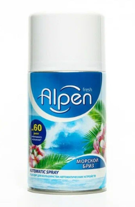 Сменный баллон для автоматического освежителя Alpen Морской бриз объёмом 250 мл это универсальный аэрозольный баллон для автоматических систем дезодорации воздуха.