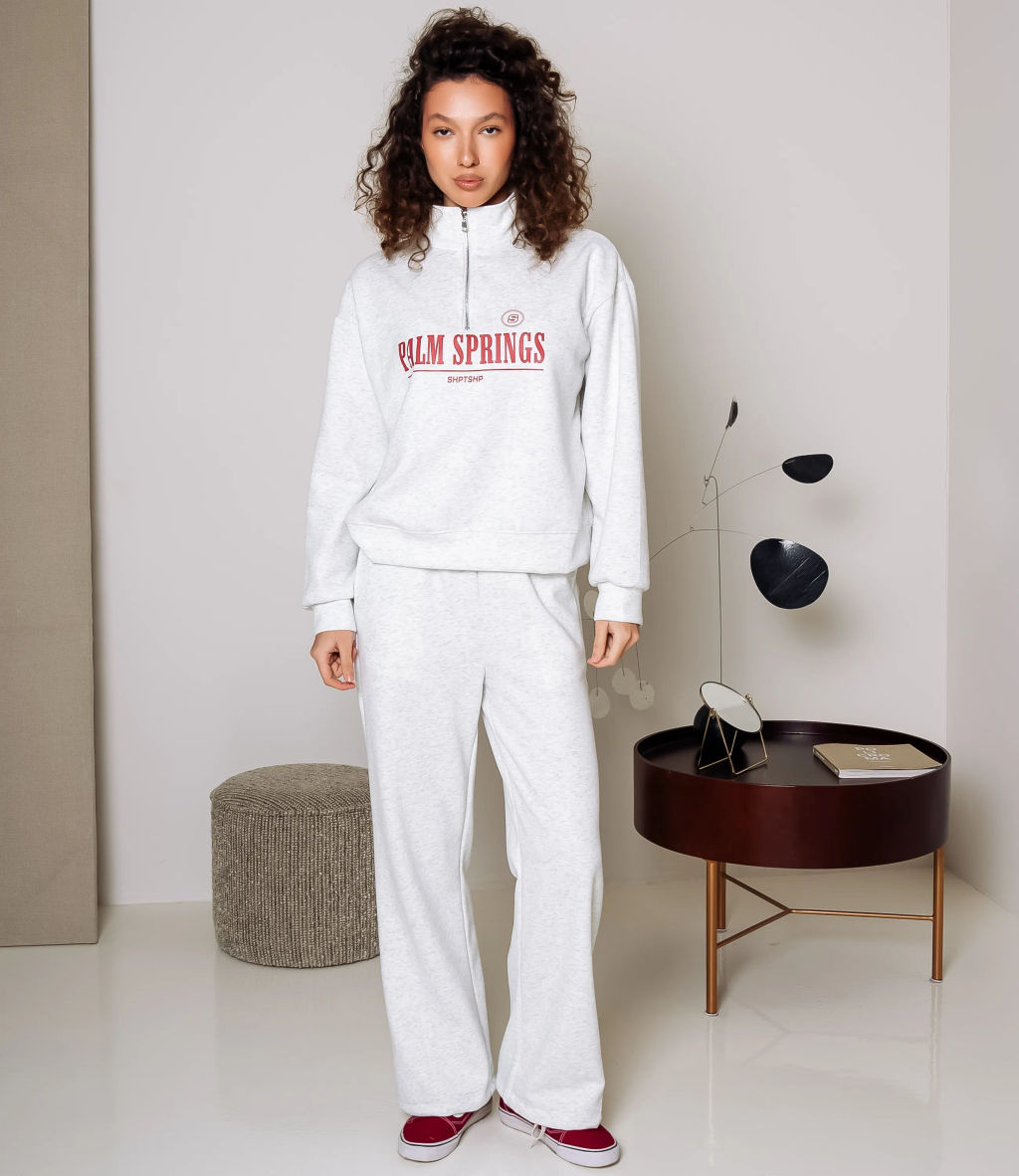 Спортивный костюм это одежда, которая подчеркивает стиль и комфорт каждой женщины. Свитшот свободного кроя с воротом?стойкой и короткой центральной молнией, манжетами на рукавах и резинкой по низу, крупная печатная надпись на груди, мягкий трикотаж средней плотности; брюки прямого фасона с эластичным поясом на кулиске, боковыми врезными карманами и чуть расширяющимися штанинами до щиколотки; плоские швы и усиленные внутренние швы обеспечивают комфорт, тепло и свободу движений. Для изготовления использованы ткани 65% хлопок и 35% полиэстер, который характеризуются отличным качеством и дышащими свойствами. Даже после множества стирок изделие не утратит первоначальной красоты. Вы будете носить его с радостью. Обратите внимание на цвет. Он полностью соответствуют фотографии на сайте. Чтобы вы были уверены в размере, мы представили на странице таблицу. Воспользовавшись ею, вы сможете сами обмерить себя и удостовериться. Установленная нами цена является приемлемой. Не откажите себе в удовольствии быть стильной и комфортной! -- Характеристики -- Цвет: серый Пол: Женский Страна производитель: Китай Сезон: Демисезон Материал: Хлопок, Полиэстер