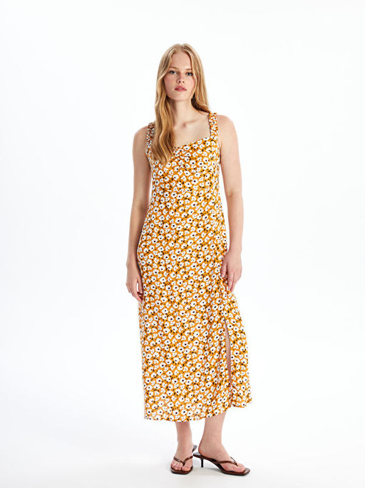 Kalp Yaka ?i?ekli Elbise