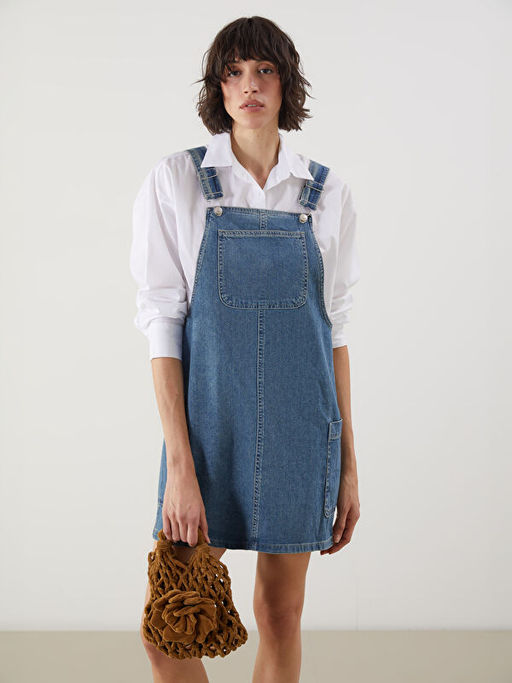 • Kare Yaka Kad?n Jean Salopet Elbise