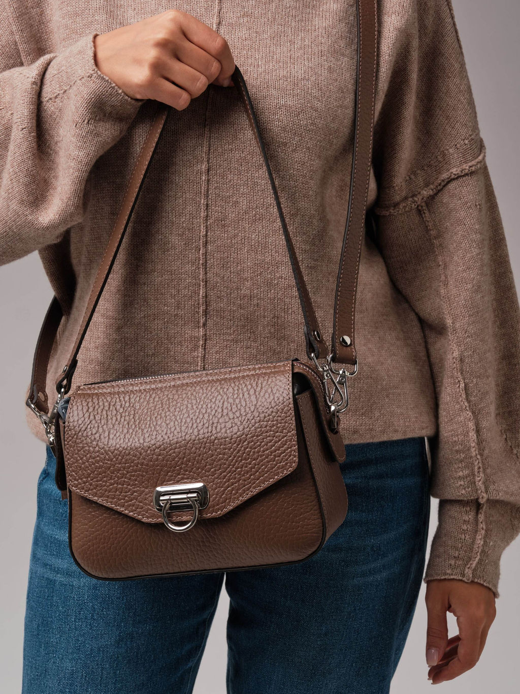 Кожаная женская сумка Azaro 3684 коричневый какао соло - стильная и современная модель, выполненная из плотной, фактурной натуральной кожи с выразительным зернением. Материал выглядит дорого, отлично держит форму и устойчив к носке. Форма сумки лаконичная и аккуратная, что делает её универсальной для любых образов - от повседневного до более элегантного. Коричневый цвет всегда актуален: он подчеркивает фактуру кожи и легко сочетается с любой одеждой. Металлическая фурнитура в холодном серебристом оттенке придает модели современный характер. Стильная застежка одновременно выполняет декоративную и функциональную роль. Женская сумка Azaro 3684 коричневый какао соло продается в комплекте с 2 ремнями - удобным коротким для ношения в руке или на плече, а также длинным, который позволяет носить ее через плечо как кросс-боди. Это делает модель практичной и адаптируемой под разные ситуации. Это стильная, продуманная и универсальная сумка, которая станет стильным акцентом и легко завершит любой образ. -- Характеристики -- Тип товара: Женские сумки Цвет: коричневый какао Материал: Натуральная кожа Бренд: Azaro Тип: Сумка на плечо, Сумка через плечо Страна-изготовитель: Россия Высота, см: 18 Ширина, см: 22 Глубина, см: 9 Материал подкладки: Хлопок Количество внутренних отделений: 1 Количество внешних карманов, шт: 2 Тип застежки: Молния, Застежка Формат А4: не вмещает Высота ручек, см: 23 Длина плечевого ремня, см: 116 Вес товара, г: 570 Ручки: На плечо, На локоть, Плечевой ремень Пол: женская коллекция Группа товара: Сумки Выгружать товары на сайт: Да