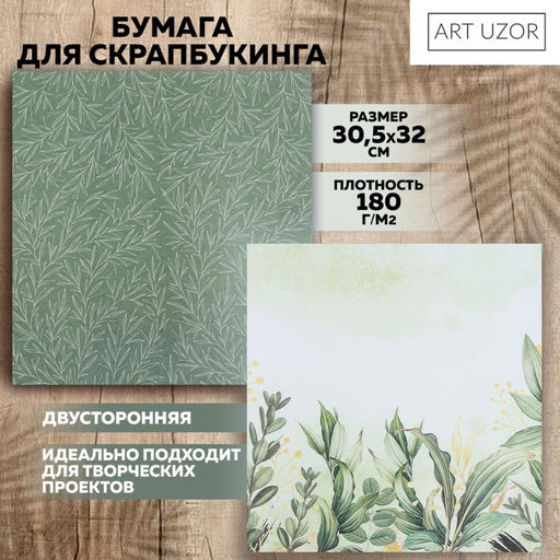 • Цена за 10 шт. Бумага для скрапбукинга Зелень, 30.5?32 см, 190 г/м?