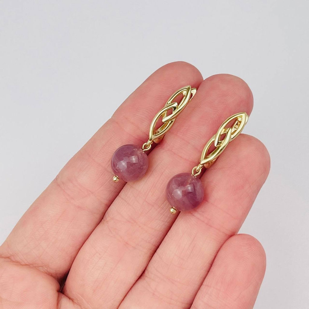 • Серьги из мадагаскарского Розового кварца с астеризмом