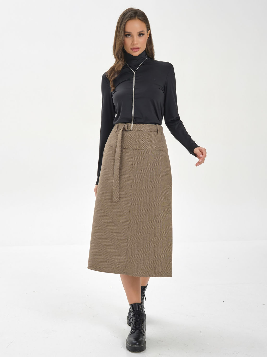 Юбка трикотажная с начёсом. Модель на кокетке, со средним швом спереди и сзади. В шлёвки по талии вставлен пояс с полукольцами. Сзади в среднем шве обработана потайная застёжка молния.Торговая марка: Stilla