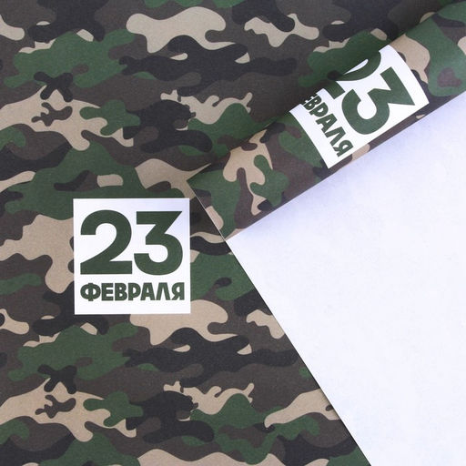 • Цена за 10 шт. Бумага упаковочная крафтовая белая 23 февраля хаки, 50?70 см