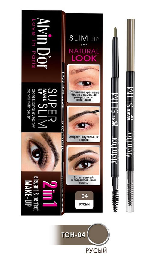 • Alvin Dor P-8 Карандаш д/бровей механический с щеточкой Super Slim (тон 04 Blonde)