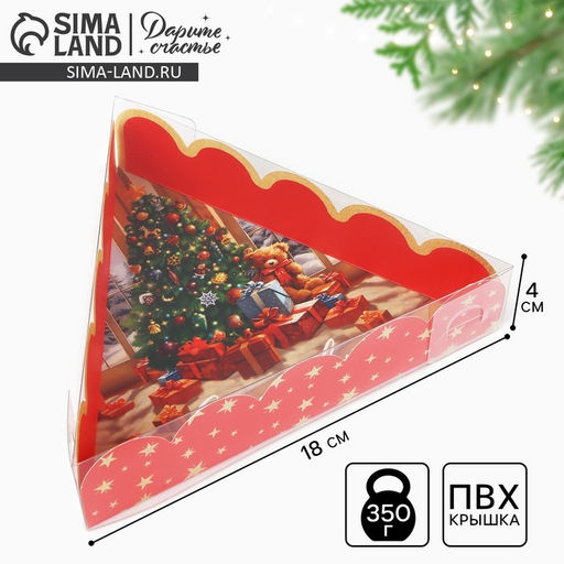 Цена за 5 шт. Коробка для кондитерских изделий новогодняя с пластиковой крышкой «Счастливых мгновений», 18×4 см