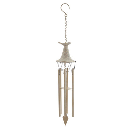 Изящное изделие из металла "Музыка ветра" представляет собой ветровой колокольчик с крючком для подвешивания. Верхняя часть изделия выполнена в виде колокольчика с птичкой, с которого спускаются несколько металлических трубок с молоточком для создания звука при дуновении ветра. Дизайн сочетает в себе прямые линии и изогнутые формы, придавая этому изделию элегантность и изысканность. Изделие представлено в двух вариантах цвета: шампань и белый.