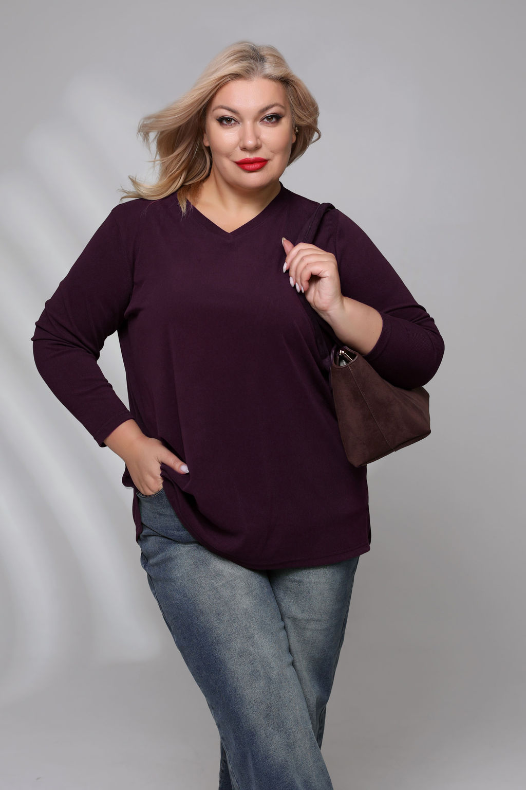 Туника однотонная V-вырез с разрезами по бокам баклажан­