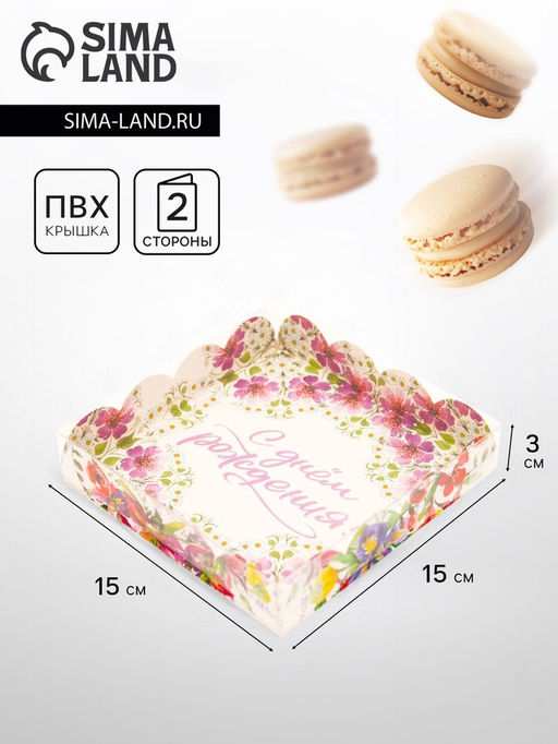 Коробка для печенья с прозрачной крышкой. Прекрасно подойдет для десертов, можно использовать для праздничного декора.Преимущества:- плотный картон;- сборная конструкция;- удобно при транспортировке. Вид упаковки: Для макарун. Вид упаковки: Для печенья. Вид упаковки: Для конфет. Форма: Квадратная. Плотность, г/м?: 260. Длина, см: 15. Ширина, см: 15. Высота, см: 3. Тематика: Цветочно-растительная. Тематика: Надписи, цифры, буквы. Вид упаковки: Картонная упаковка. Тематика праздника: День рождения. Тематика праздника: Универсальная тематика. Вид: Универсальные. Вид: Кондитерские коробки. Вид: Упаковка для маффинов/макарони. Вид еды: Универсальный. Вид еды: Для десертов. Вид еды: Для печенья. Вид: Складные коробки. Наша разработка: Да. Размеры товара: 15/3/15.