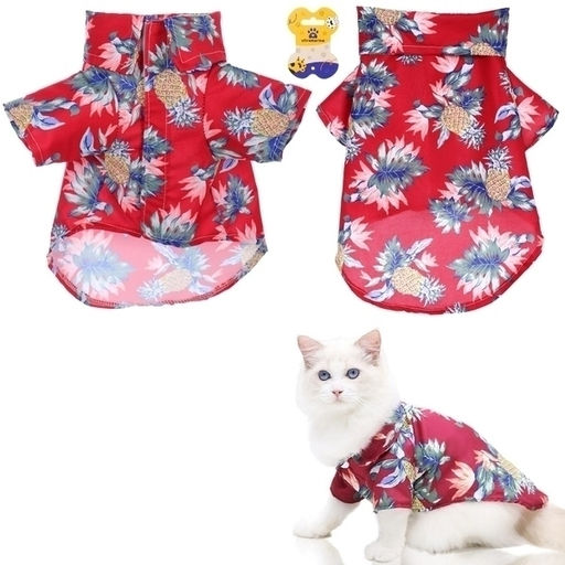 • Рубашка для собак и кошек малых и средних пород "СТИЛЬНЫЙ БРО", цвет красный, принт ананасы с цветами, размер S