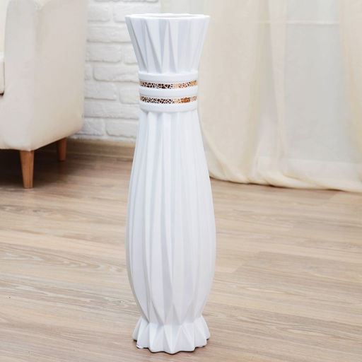 Керамическая ваза для цветов, сухоцветов «Геометрия люкс», вертикальные полосы, напольная, 15×60 см, белый