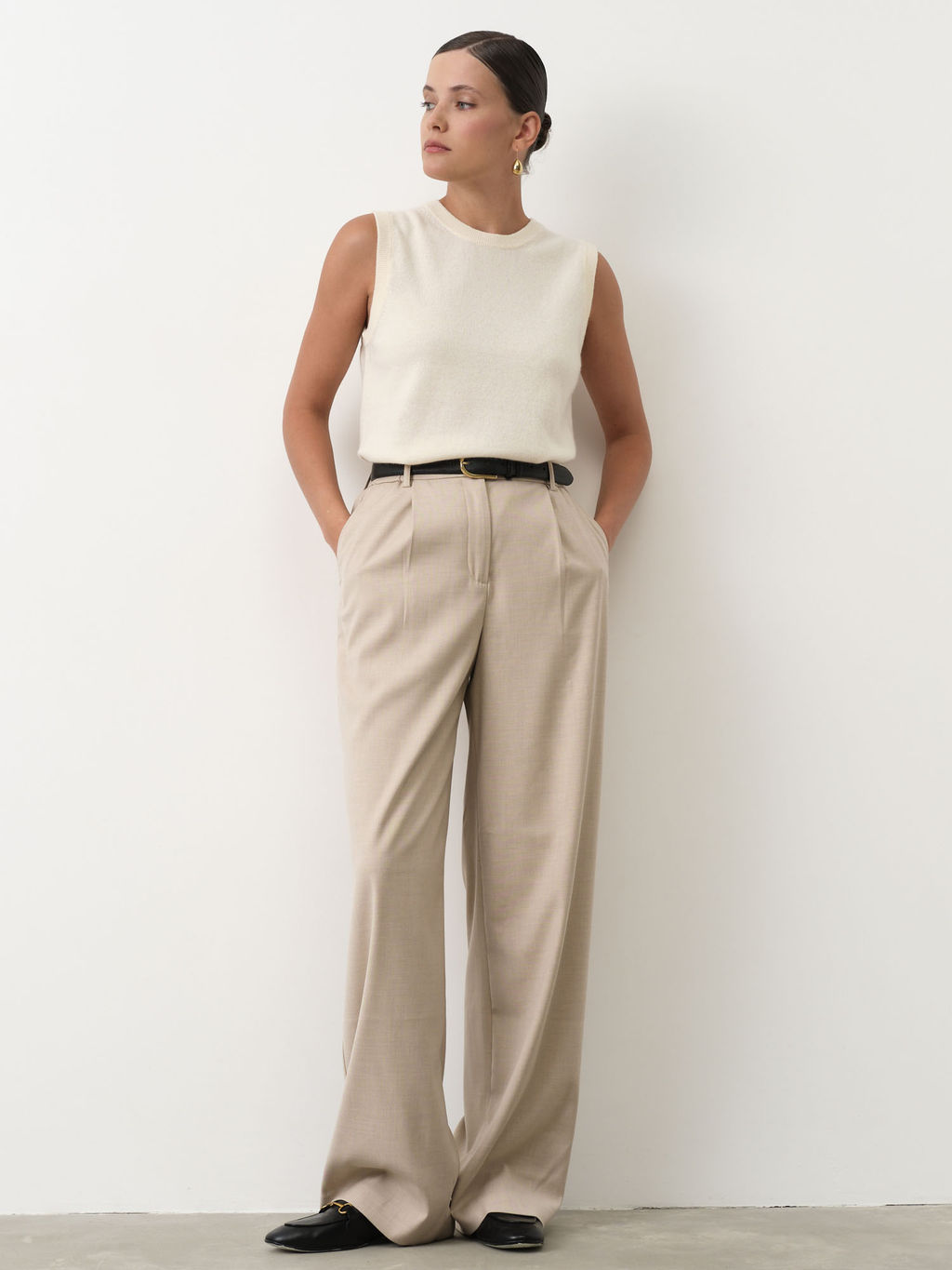 Минималистичный силуэт без лишних деталей, аккуратная линия плеч и ровная текстура полотна подчёркивают изящество модели.