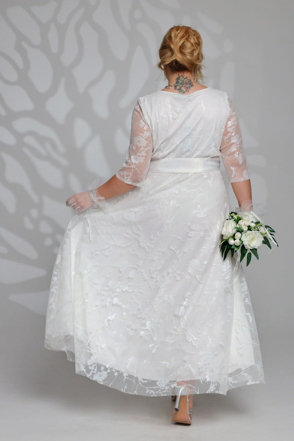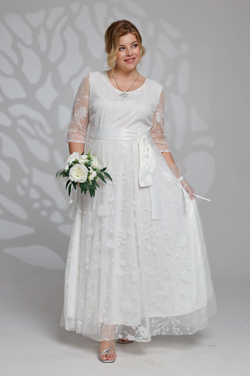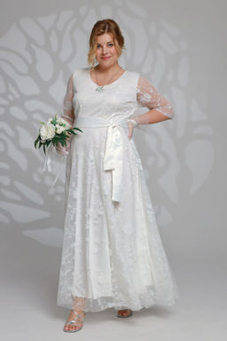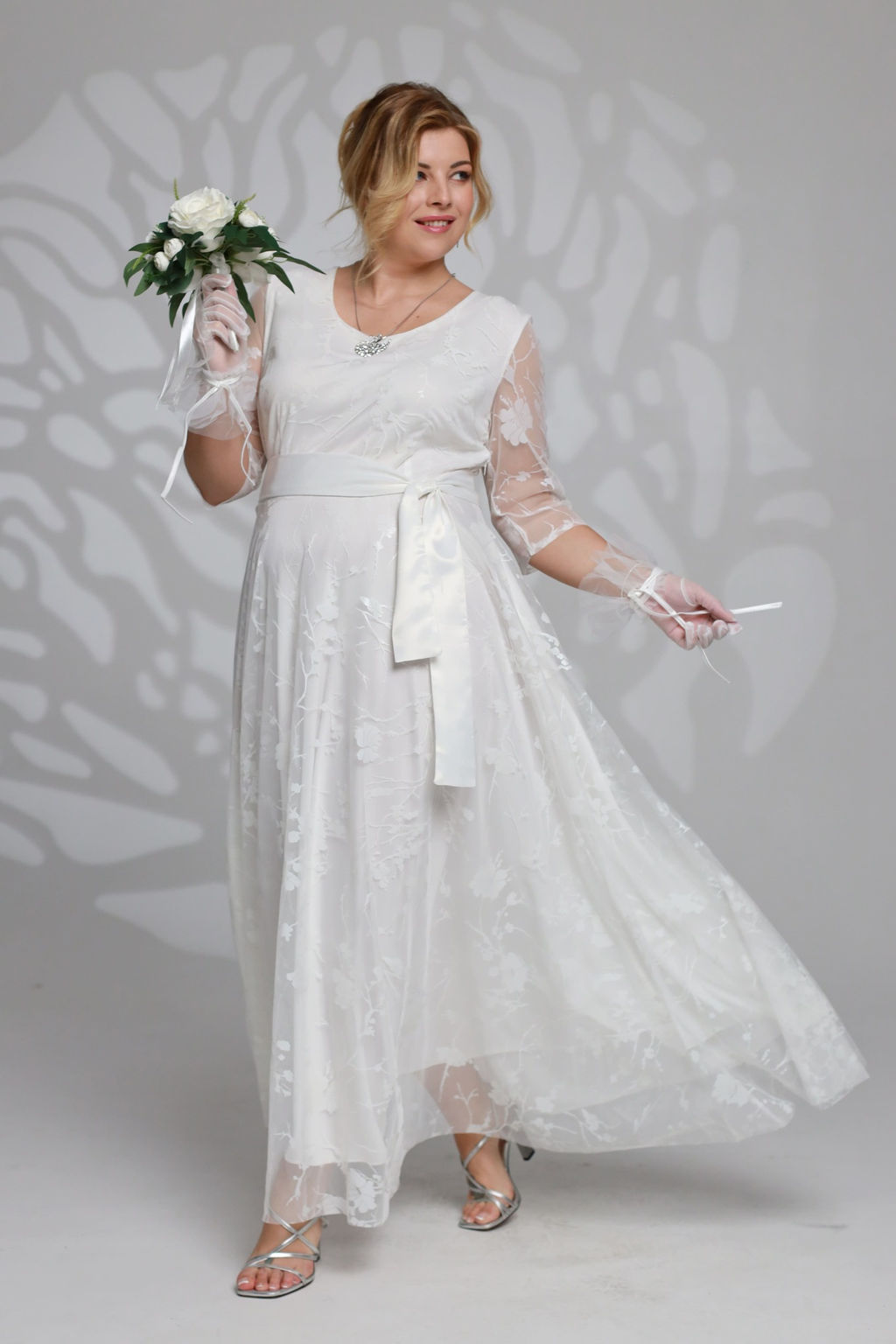 Элегантное платье из мягкой струящейся ткани - подчеркнет вашу женственность и изящность. Модель без подплечников, имеет прозрачные рукава ?. Полуприлегающий верх идет с классическим круглым вырезом. Платье отрезное по линии талии. Вытачки на груди и по спинке обеспечивают оптимальную посадку по фигуре. Линия талии подчеркнута с помощью пояса, который можно завязать по желанию (в виде банта). Свободная юбка создает женственный силуэт и искусно обыгрывает бедра. Фатиновый верх платья  в оригинальный принт добавляет модели воздушности и лёгкости. Яркий клатч и туфли на каблуках станут идеальным дополнением к нарядному образу.