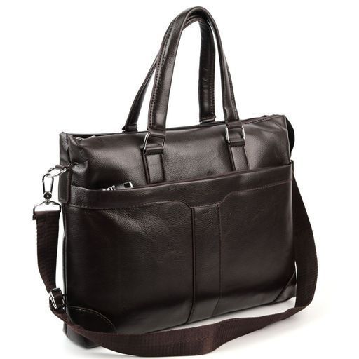 Мужская сумка-портфель из искусственной кожи. Высота ручек 17 см. Снаружи, на лицевой стенке-карман на молнии, на задней стенке-карман на молнии. Сумка имеет одно отделение на молнии, внутри есть боковой карман на молнии и карман на липучке. В комплекте регулируемый по длине наплечный ремень.