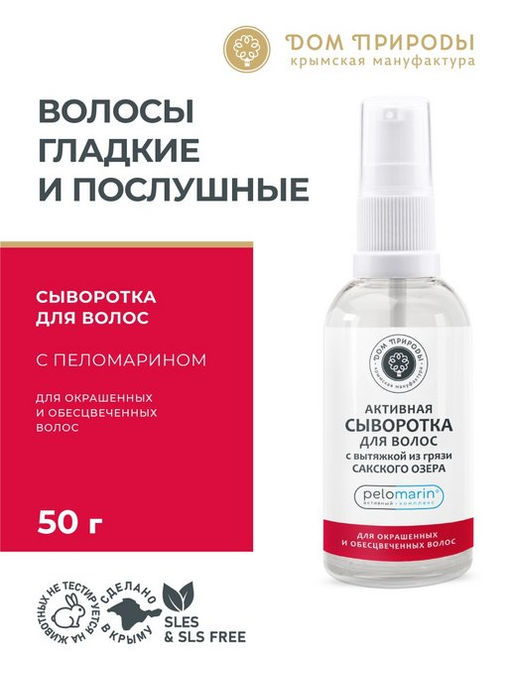 Сыворотка создана на основе Пеломарина - активного комплекса на базе вытяжки из грязи Сакского озера с гуминовыми кислотами и фульвовыми минералами. Он разработан специалистами ТМ "Мануфактура ДОМ ПРИРОДЫ" для обогащения косметических средств биологически активными веществами, содержащимися в грязи Сакского озера. Все компоненты Пеломарина обладают высокой биодоступностью - преодолевают липидный барьер кожи и проникают в мембраны клеток, снабжая их витаминами, минералами, аминокислотами и микроэлементами. Пеломарин восстанавливает структуру волос, препятствует их выпадению и улучшает рост.