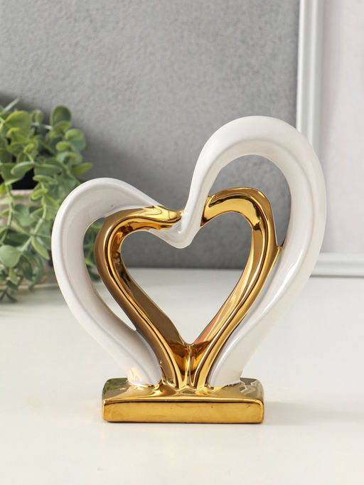 Фигурка керамика Сплетённые сердца, белый с золотом, 5.5?17.5?19.5 см
