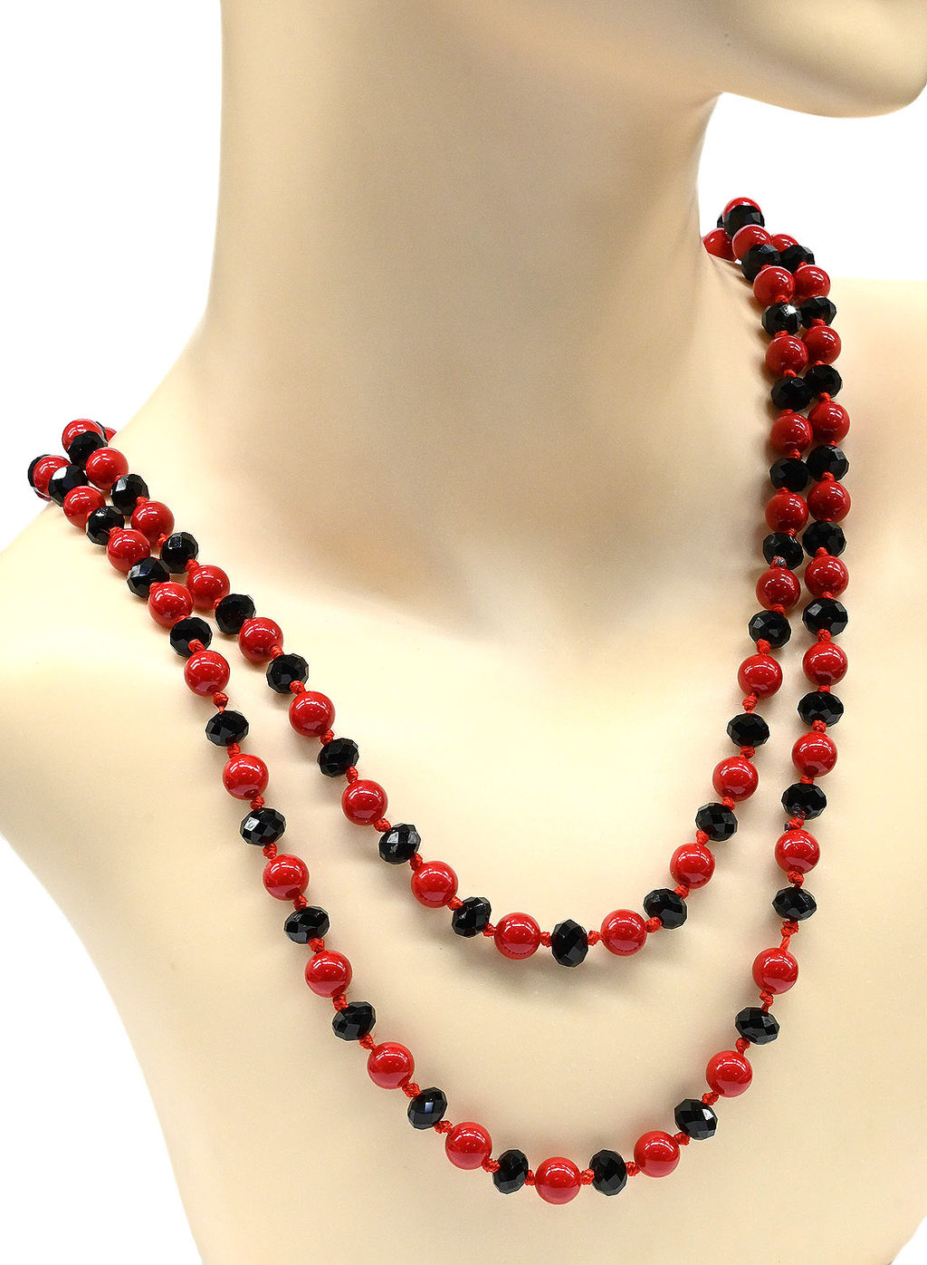 • Бусы длинные из коралла имитация и циркона шарик 8мм