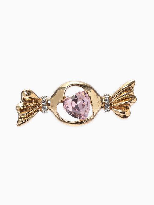 Брошь «Конфета» кристалл сердце, цвет розовый в золоте