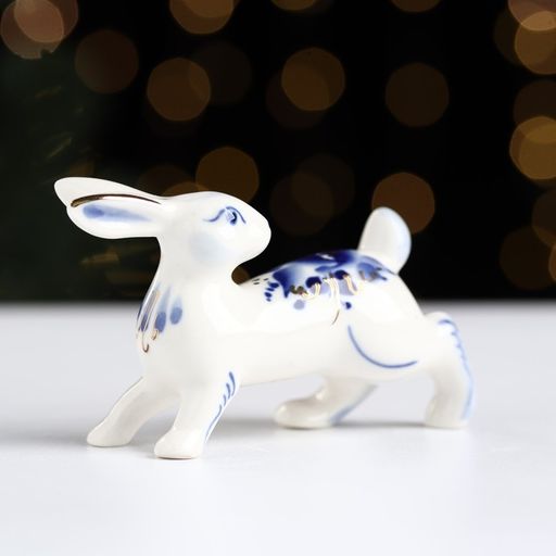 • Сувенир "Заяц Русак", гжель, кобальтовая роспись в золоте, 8,5х2,5 см