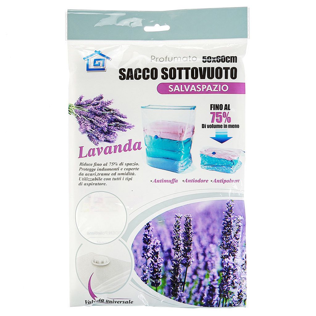 Вакуумный компрессионный пакет для хранения вещей 50х60см "Лаванда" -75% плотный (Китай)