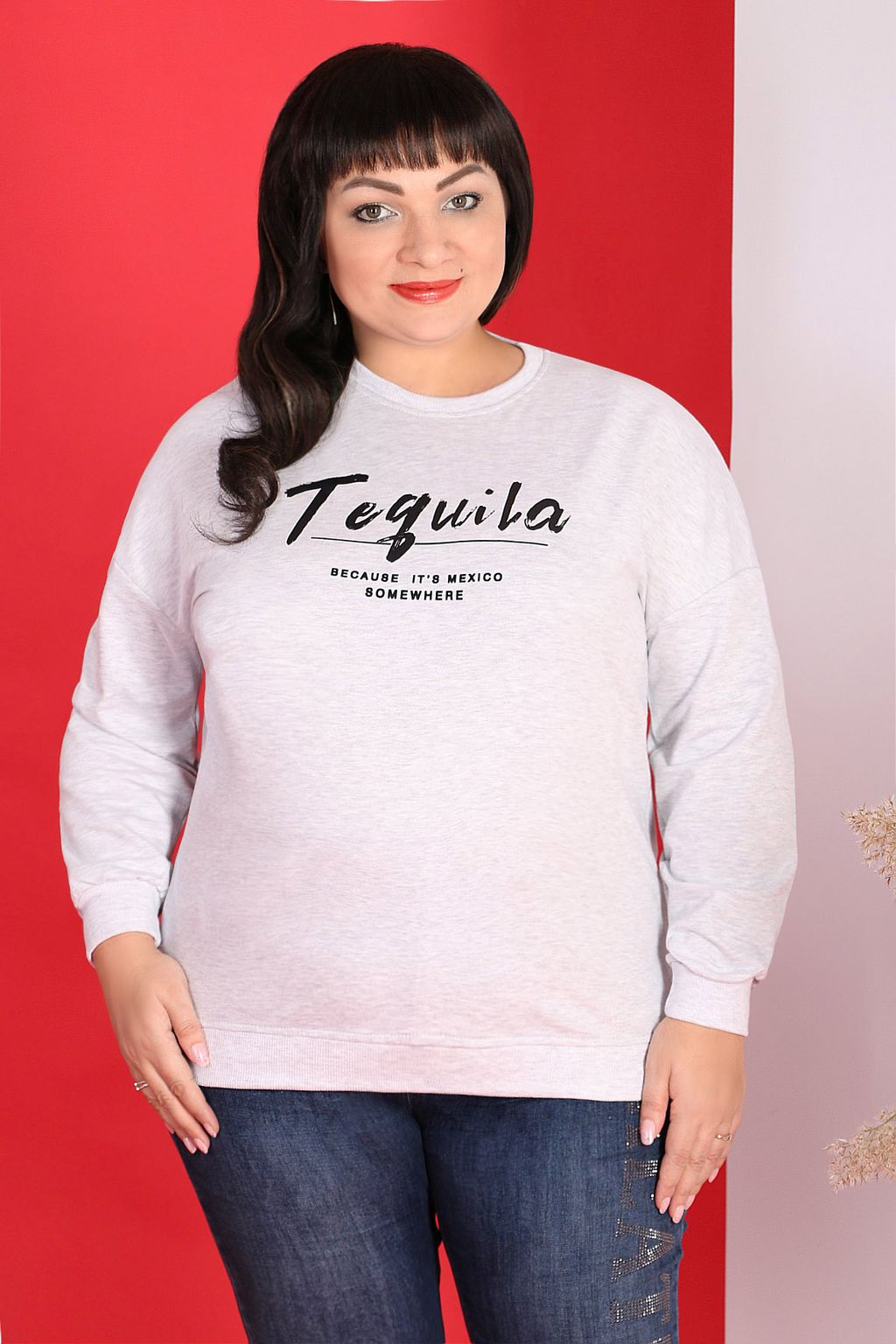 • Свитшот больших размеров женский светло-серый с черной надписью