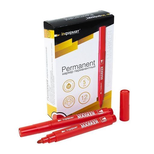 • Маркер перманент. INFORMAT PERMANENT 1-5 мм красн. круглый 1 шт