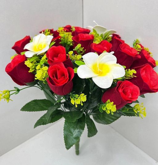 Цветы искусственные декоративные Розы 24 бутона + 3 франжипани 37 см