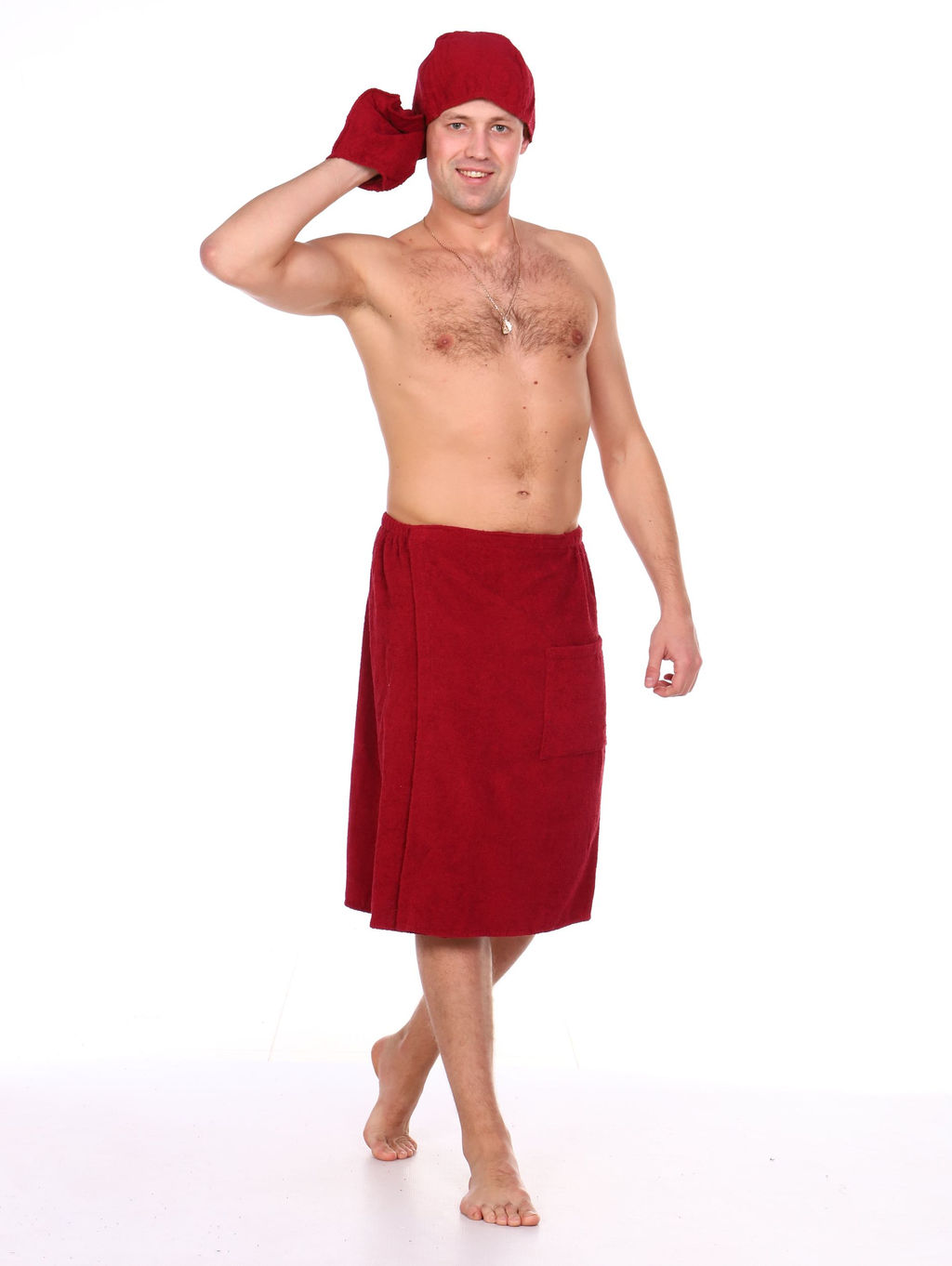 Артикул: Комплект для сауны мужской,100% хлопок (Бордовый )