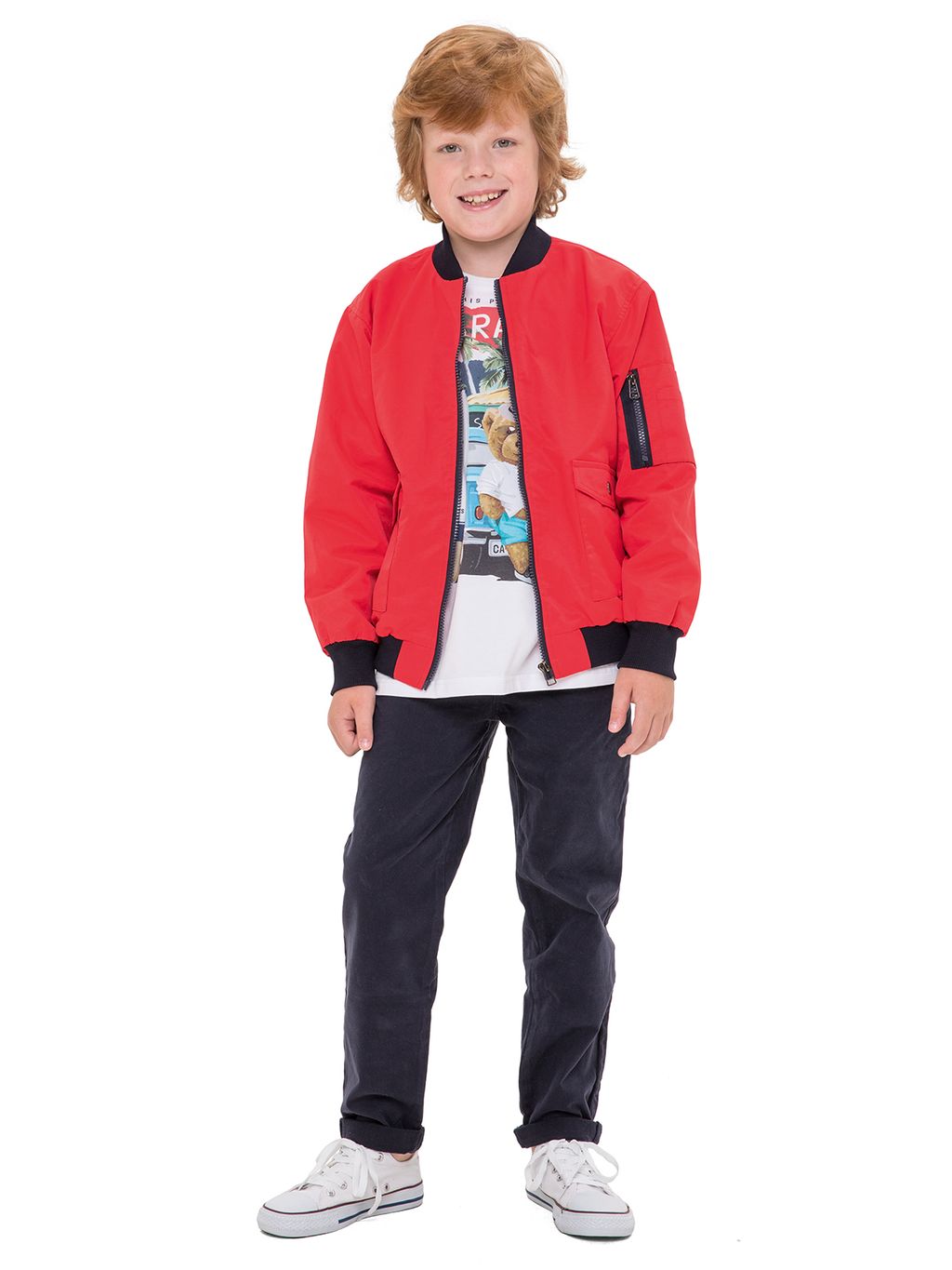 Ветровка-бомпер выполнена из ткани с водоотталкивающей пропиткой, длинные рукава с притачными манжетами, застежка молния, воротник стойка из кроеного трикотажа, притачной пояс, два кармана с клапанами на кнопках, на левом рукаве два кармана, один на молнии, на спинке кокетка и складка, изделие на подкладке.