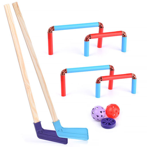 • Хоккейный набор с мини воротами для игры дома и на улице. Комплект: 2 клюшки, 4 ворот, 2 мяча, шайба. съемные