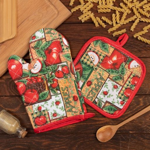 Кухонный набор (2 предмета) Доляна Яблоня, прихватка 16х16 см, рукавица 25*16 см, 100% п/э