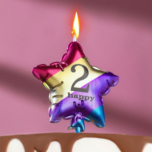 • Свеча в торт "Воздушный шарик. Звезда", цифра "2", 5,5 см,  разноцветная