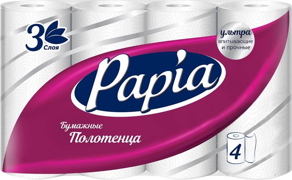 • Полотенца бумажные Papia 3 слоя, 4 шт.